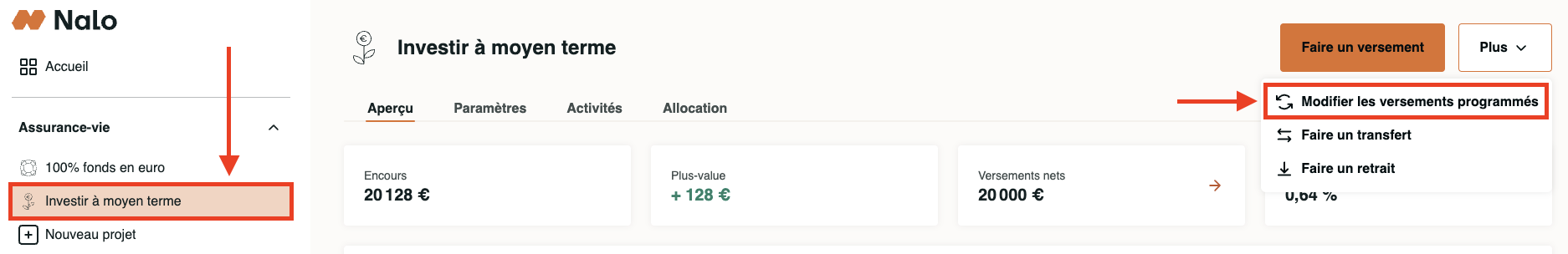 1) Modifier les paramètres de vos versements programmés