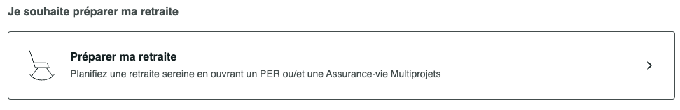 Afin d'ouvrir un PER Nalo, vous devez réaliser une simulation d'investissement sur notre site, en choisissant le projet "Préparer ma retraite", puis le PER.