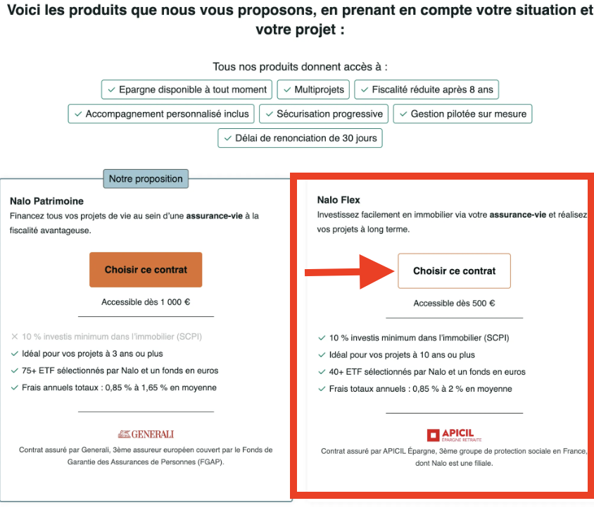 Si vous indiquez un horizon de placement inférieur à 10 ans, Nalo Flex ne vous sera donc pas proposé dans le parcours de souscription.