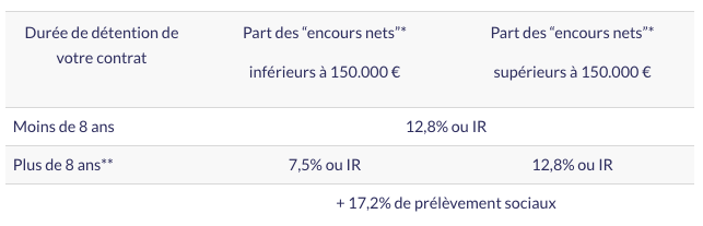 Pour un rachat après 8 ans, le taux dépend du montant des versements :